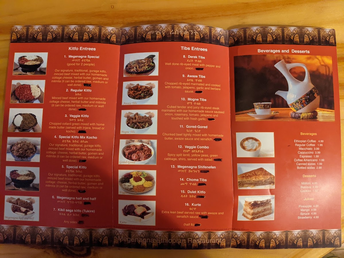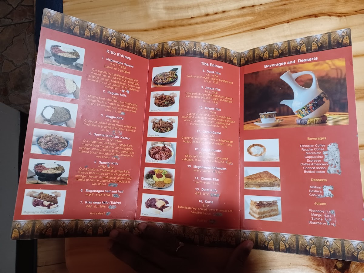 Discover the vibrant flavors of Ethiopia at Megenagna, located in Aurora, CO. This charming restaurant offers a menu that celebrates traditional Ethiopian cuisine, with a spotlight on their renowned kitfo entrees. The Megenagna Special is a delightful blend of minced beef, homemade cottage cheese, and herbal butter, perfect for sharing. For a vegetarian option, the Veggie Kitfo features chopped collard greens, showcasing the rich, authentic flavors that define Ethiopian cooking.